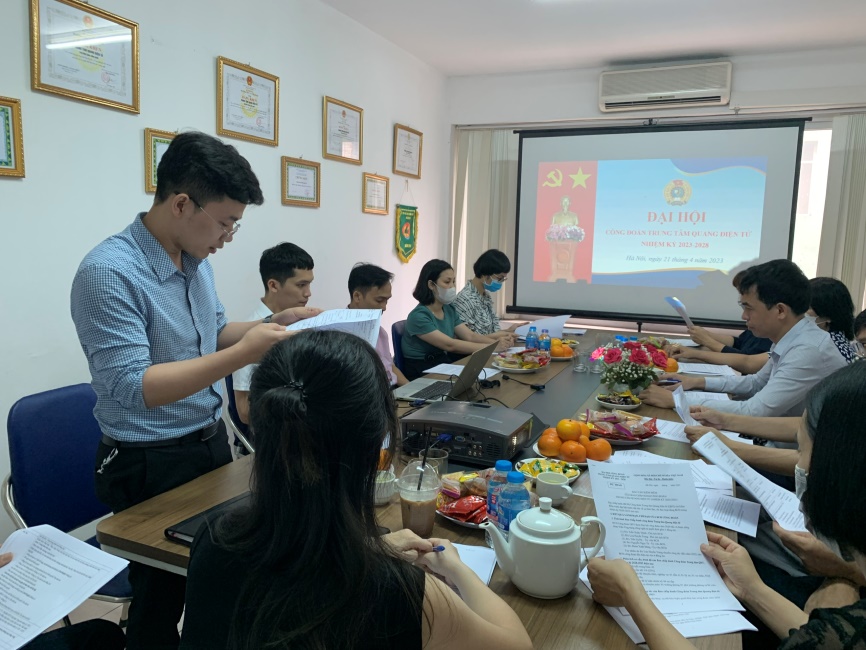 Sáng ngày 21 tháng 4 năm 2023, được sự đồng ý của BCH Công đoàn Viện Ứng dụng công nghệ, Công đoàn Trung tâm Quang điện tử tổ chức Đại hội Công đoàn Trung tâm Quang điện tử nhiệm kỳ 2023-2028 và tổng kết nhiệm kỳ 2020-2023 (nhiệm kỳ rút ngắn theo chỉ đạo của Công đoàn viên chức Việt Nam).