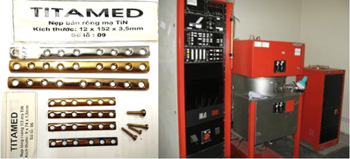 Trong giai đoạn năm 1992-1994, Trung tâm Quang điện tử đã thực hiện đề tài nghiên cứu cấp Bộ KHCN: “Nghiên cứu công nghệ chế tạo lớp phủ TiN lên nẹp vít xương dùng trong y tế”. Kết quả thử nghiệm tiền lâm sàng trên động vật đã được hội đồng khoa học đánh giá là nẹp vít mạ titan nitride không làm ảnh hưởng tới tổ chức phần mềm và tổ chức xương quanh ổ kết xương trong thời gian 180 ngày trên động vật thử nghiệm. Sau khi thực hiện thành công đề tài, đã tiến hành dự án sản xuất thử nghiệm các sản phẩm nẹp và vít xương cẳng và cánh tay, từ khâu gia công thép 316L đến xử lý bề mặt và phủ màng TiN. Sản phẩm sau đó đã được cấy ghép trên cơ thể bệnh nhân tại bốn bệnh viện (Học viện Quân y, bệnh viện đa khoa Phú Thọ, bệnh viện Phong Thái Bình và bệnh viện đa khoa Vĩnh Phúc).